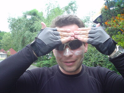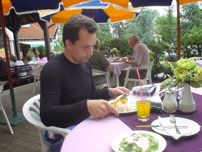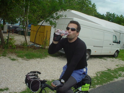 Fonyódig jó tempóban kerekeztünk, s a nap sem kínzott bennünket túlságosan. Itt végre megebédeltünk, majd az időközben nekigyürkőző csillagunk ellenében bevetettünk némi naptejet, mert kedveljük, amikor a naptejjel szimbiózisba kerülő izzadság nem tisztán csurog bele a szemünkbe. Vagy nem. Némi kényelmetlenséget viszont muszáj elviselni a kalandozások során.